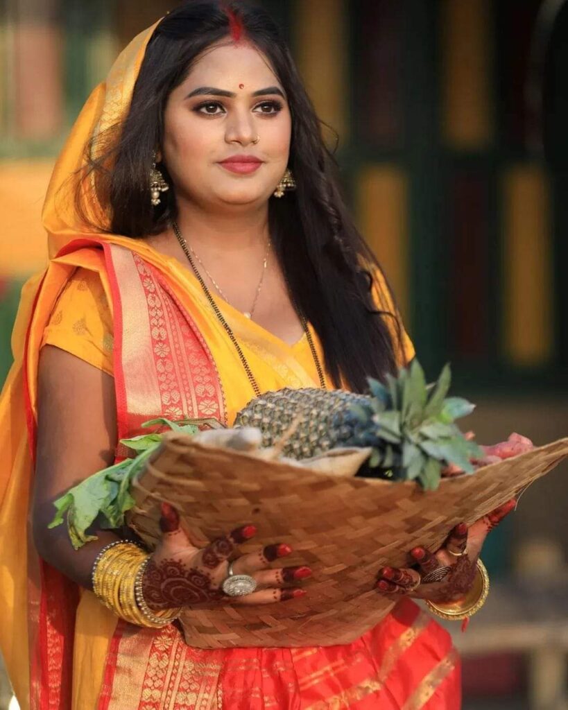 इस पर्व पर महिलाएं अस्ताचल सूर्य एवं उदीयमान सूर्य को नदी तालाब के पानी में खड़ी होकर हाथ मे सुप में विभिन्न फल और पकवान धारण कर अर्घ्य देती है। यही एकमात्र पर्व है जिसमें अस्ताचल सूर्य को अर्घ्य दिया जाता है।