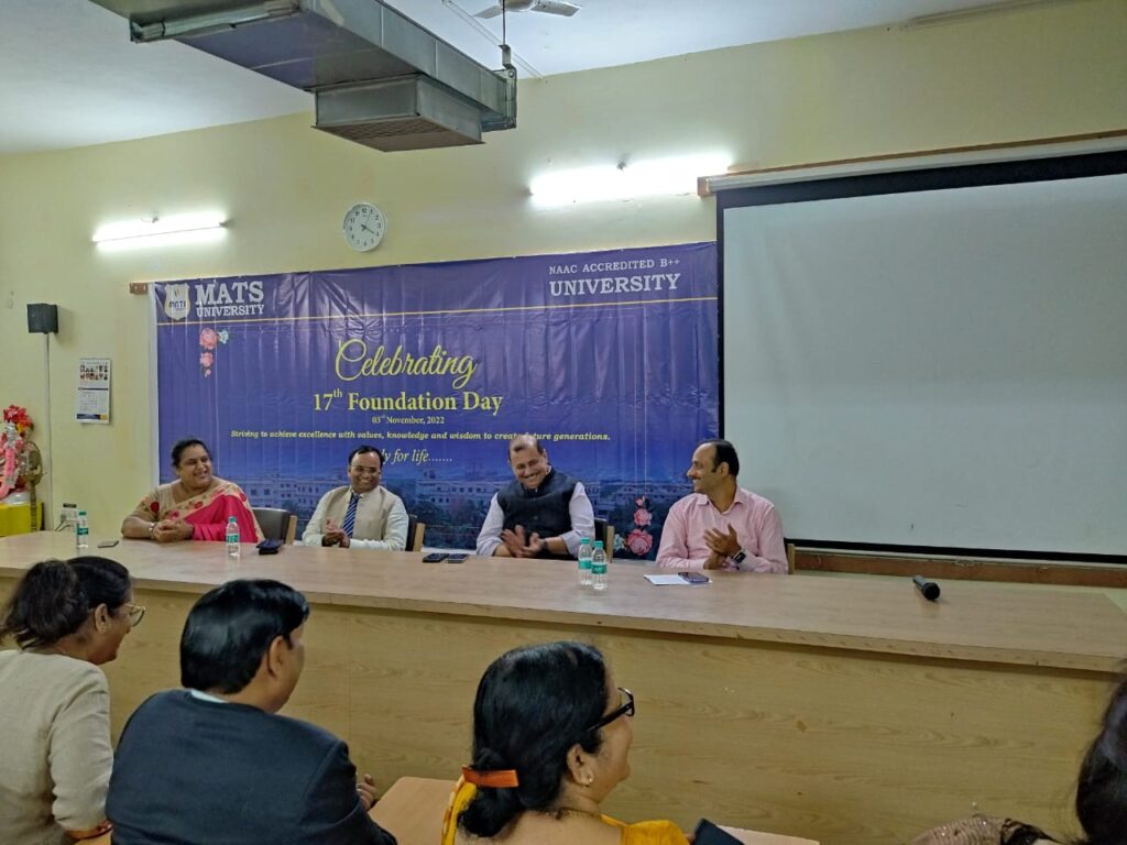 रायपुर। मैट्स यूनिवर्सिटी, रायपुर ने 3 नवंबर को अपना 17वां स्थापना दिवस मनाया। इस अवसर पर विभिन्न रचनात्मक गतिविधियों का भी आयोजन किया गया।