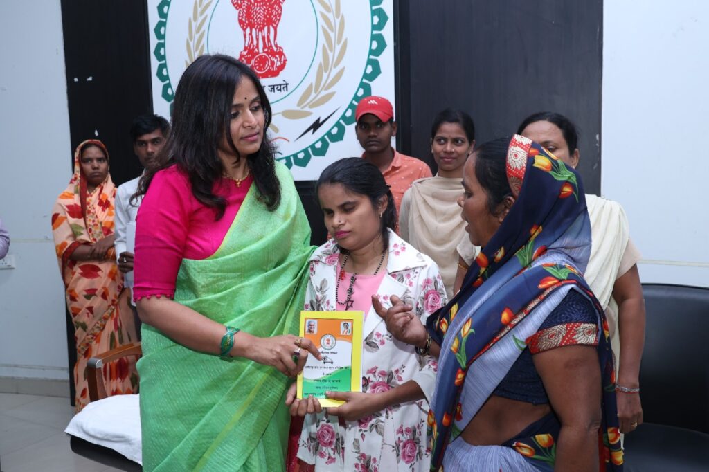 मां अपनी दृष्टिहीन बेटी मिथिला को लेकर जनदर्शन में पहुंची। ग्राम पंचायत गढ़उमरिया निवासी श्रीमती गीता बाई साव ने अपनी दृष्टिहीन बेटी के लिए शासन की राशन कार्ड, विकलांग, आवास जैसे विभिन्न योजनाओं से लाभान्वित करने के लिए आवेदन किया। कलेक्टर श्रीमती साहू उनके आवेदन पर खाद्य अधिकारी को निर्देशित किया एवं मौके पर ही उन्हें अंत्योदय अन्न योजना के विशेष कमजोर वर्ग का राशन कार्ड बनाकर प्रदाय किया। कलेक्टर द्वारा बालिका के लिए शासकीय योजनाओं में हर संभव मदद करने की बात कही। राशन कार्ड बनने पर दोनों ने कलेक्टर को धन्यवाद दिया। इस दौरान सीईओ जिला पंचायत श्री अबिनाश मिश्रा, निगम आयुक्त श्री संबित मिश्रा, अपर कलेक्टर सुश्री संतन देवी जांगडे, अपर कलेक्टर श्री राजीव पांडे उपस्थित थे।