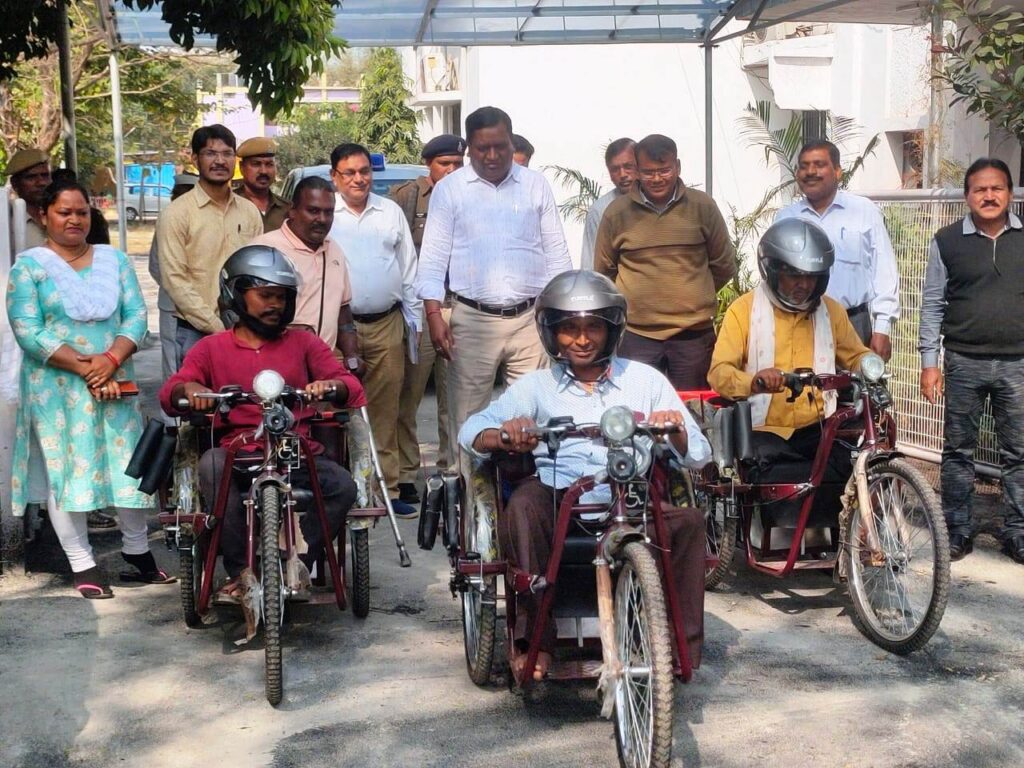 कलेक्टर डोमन सिंह के मार्गदर्शन में आज कलेक्टोरेट सभाकक्ष में जनचौपाल का आयोजन किया गया। कलेक्टर ने जनचौपाल में आए दिव्यांगजन ग्राम पंचायत कोलिहापुरी के श्री दुलेश्वर जंघेल, बधीयाटोला के श्री मूलचंद सिन्हा व श्री दिनेश निषाद को मोटराइज्ड ट्राईसाईकिल प्रदान किया। अपर कलेक्टर श्री सीएल मारकण्डेय ने आज जन चौपाल कार्यक्रम में आये नागरिकों से उनकी विभिन्न समस्याओं और माँगो से संबंधित आवेदन प्राप्त किये। अपर कलेक्टर श्री मारकण्डेय ने विभागीय अधिकारियों के साथ आम जनों की समस्याओं को सुनने के साथ ही त्वरित निराकरण की दिशा में आगे की कार्रवाई की। उन्होंने अधिकारियों को शीघ्र निराकरण की दिशा में कार्यवाही करने कहा है। जन चौपाल कार्यक्रम में राजनांदगांव के बजरंगपुर नवागांव निवासी श्रीमती दुर्गा सोनी ने प्रधानमंत्री आवास स्वीकृत करने संबंधी आवेदन दिया है। इसी तरह डोंगरगांव के वार्ड 3 सेवानगर के श्री सतीश बरिहा ने मुख्यमंत्री स्वावलंबन योजना अंतर्गत आर्थिक सहायता राशि स्वीकृत करने, विकासखंड छुरिया के ग्राम पंचायत तुर्रेगांव के ठगिया बाई ने प्रधानमंत्री आवास स्वीकृत करने, डोंगरगढ़ के ग्राम करवाही निवासी सदाराम ने अपने खेत के पेड़ की कटाई की स्वीकृति देने, राजनांदगांव के नवागांव निवासी फगनी बाई ने वृद्धा पेंशन राशि स्वीकृत करने, अचानकपुर राजनांदगांव के राधिका निषाद ने दिव्यांग पेंशन स्वीकृत करने, छुरिया के तेंदूनाला निवासी श्री मिथिलेश ठाकुर ने बारिश के दिनों में हुई अपनी मकान की क्षतिपूर्ति राशि स्वीकृत करने, ग्राम पंचायत बरबसपुर के नेमीन वर्मा ने श्रमिक कार्ड बनाने संबंधी आवेदन दिया है। प्राप्त सभी आवेदनों को ऑनलाइन एंट्री करने के साथ ही संबंधित विभाग में भेजे जाने की कार्रवाई की गई है। दिव्यांगजन श्री सुखचंद कवर एवं एवं श्री तोमर सिंह चंद्रवंशी को वैशाखी जोड़ी प्रदाय किया गया है। जन चौपाल कार्यक्रम में राजस्व विभाग द्वारा 5 लोगों को जाति प्रमाण पत्र प्रदान किया गया है। जिलेभर में एसडीएम कार्यालय, सीएमओ, तहसीलदार, जनपद कार्यालय में आज जनचौपाल का आयोजन किया गया तथा जनसामान्य की समस्याओं का समाधान किया गया।