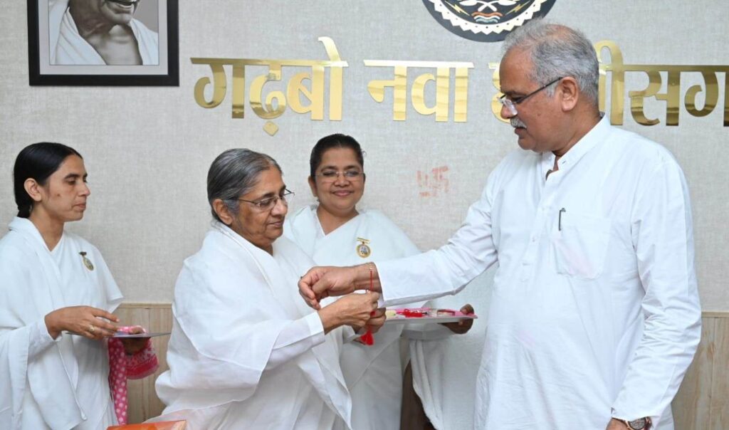 मुख्यमंत्री भूपेश बघेल को रक्षाबंधन के पावन पर्व पर ब्रह्मकुमारी बहनों ने बांधी राखी