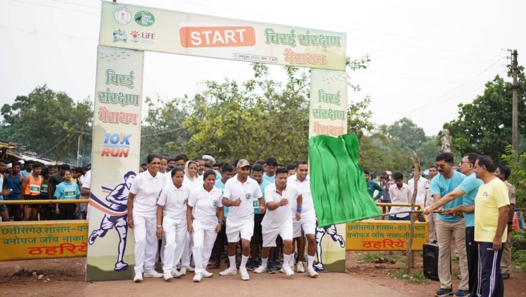रायपुर, 01 अक्टूबर 2023 /कांगेर घाटी राष्ट्रीय उद्यान द्वारा वन्यप्राणी संरक्षण सप्ताह के उपलक्ष्य में 01 अक्टूबर 2023 को तीरथगढ़ में ‘चिरई संरक्षण मैराथन‘ का आयोजन किया गया। यहां उत्साहपूर्ण माहौल में आयोजित 10 किलोमीटर मैराथन में पक्षियों के संरक्षण एवं संवर्धन हेतु स्थानीय जन-जीवन में जागरूकता लाने व्यापक प्रचार-प्रसार किया गया। छत्तीसगढ़ के प्रसिद्ध पर्यटन स्थल तीरथगढ़ में आयोजित चिरई संरक्षण मैराथन में 350 से अधिक पुरूष एवं महिला प्रतिभागी शामिल हुए। प्रतियोगिता में पुरूष वर्ग में प्रथम – श्री ईश्वर सिंग प्रसाद, निवासी-जिला बलौदाबाजार, द्वितीय – श्री भोजराज साहू, निवासी-जिला बलौदाबाजार तृतीय-श्री कलजुुग, निवासी-जिला बस्तर विजेता रहे एवं महिला वर्ग में प्रथम – कु. कमली पोयाम, निवासी-पखनार,जिला बस्तर, द्वितीय – प्रमिला मण्डावी, निवासी -जिला बस्तर तृतीय – ममता कश्यप, निवासी-जिला बस्तर रहे।वन्य एवं जलवायु परिवर्तन मंत्री श्री मोहम्मद अकबर के दिशा-निर्देश तथा प्रधान मुख्य वन संरक्षक एवं वन बल प्रमुख श्री व्ही. श्रीनिवास राव और प्रधान मुख्य वन संरक्षक (वन्य प्राणी) श्री सुधीर अग्रवाल के मार्गदर्शन में उक्त प्रतियोगिता का आयोजन सफलतापूर्वक किया गया। कार्यक्रम में मुख्य वनसंरक्षक (वन्यप्राणी) एवं क्षेत्रीय निदेशक इन्द्रावती टायगर रिजर्व श्री राजेश पाण्डेय, सेवानिवृत्त, मुख्य वनसंरक्षक, जगदलपुर वृत्त श्री मोहम्मद शाहिद, निदेशक, कांगेर घाटी राष्ट्रीय उद्यान जगदलपुर श्री धम्मशील तथा सरपंच तीरथगढ़ मुख्य अथिति के रूप में उपस्थित रहे। कार्यक्रम में कांगेर घाटी राष्ट्रीय उद्यान के समस्त क्षेत्रीय कर्मचारी, तीरथगढ़ इको विकास समिती के सदस्य, मैना मित्र, युवोदय वन मितान उपस्थित थे।