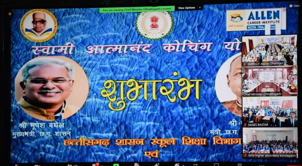 मुख्यमंत्री भूपेश बघेल ने स्वामी आत्मानंद कोचिंग योजना का किया शुभारंभ