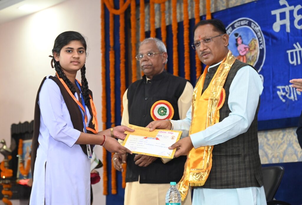 रायपुर, 30 दिसंबर 2023/ मुख्यमंत्री श्री विष्णु देव साय आज सरस्वती शिक्षण संस्थान रोहणीपुरम् में मेधावी छात्र अलंकरण समारोह में शामिल हुए। उन्होंने प्रतिभावान् छात्रा-छात्राओं को सम्मानित किया। उन्होंने इस अवसर पर छात्र-छात्राओं को सम्बोधित करते हुए कहा कि शिक्षा का अर्थ केवल अक्षर ज्ञान प्राप्त करना अथवा डिग्रियां हासिल कर लेना नहीं है, बल्कि वास्तविक शिक्षा वह है जो विद्यार्थी को ज्ञानवान के साथ-साथ चरित्रवान भी बनाएं, उसे राष्ट्र के लिए उज्ज्वल चरित्र के नागरिक तैयार करें।मुख्यमंत्री ने विद्यार्थियों से कहा कि हम सभी सनातन जीवन मूल्यों के संवाहक हैं। इन मूल्यों को बचाए रखना ही पूरी दुनिया को बचाए रखने का एकमात्र उपाय है।