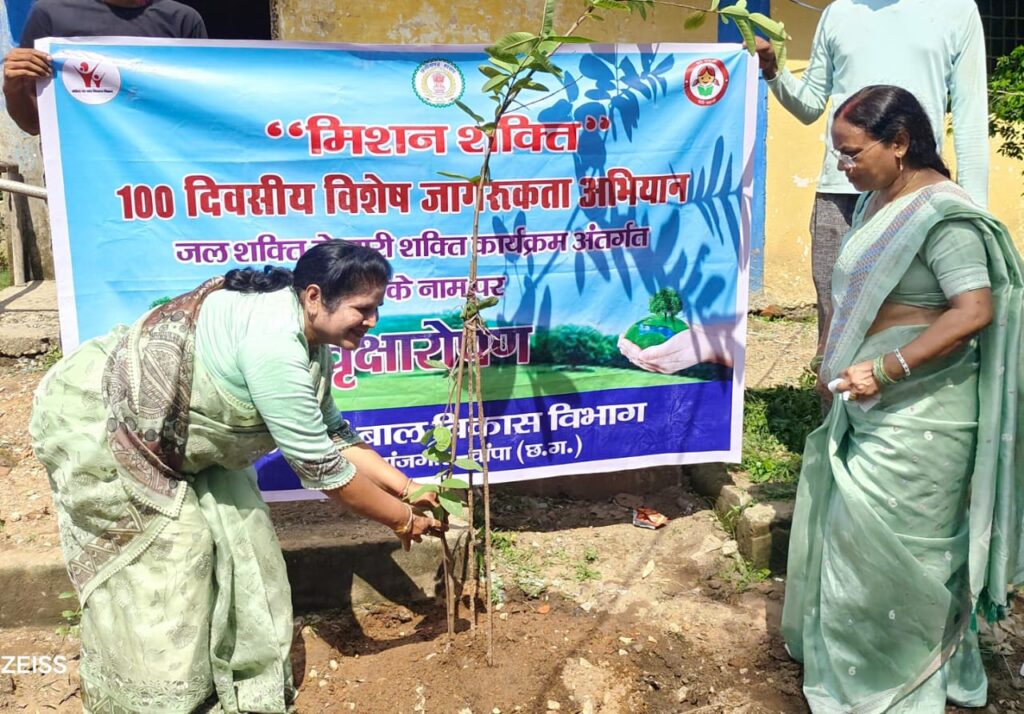कलेक्टर आकाश छिकारा के निर्देशन में जिले में मिशन शक्ति के लिए 100 दिवसीय विशेष जागरूकता अभियान के अन्तर्गत जिले के सभी क्षेत्रों में विशेष जागरूकता अभियान चलाया जा रहा है।जिला कार्यक्रम अधिकारी अनिता अग्रवाल ने बताया कि जिसका उद्देश्य महिलाओं के शोषण और भेदभाव को समाप्त करना महिलाओं के सशक्तिकीण और विकास के लिए मार्गदर्शन, सहायता और सहयोग प्रदान करना है। उपरोक्त उद्देश्य की पूर्ती के लिए वर्तमान सप्ताह में ( 21 जून से 04 अक्टूबर 2024) के दौरान जिले के सभी परियोजना (अकलतरा, बलौदा, बम्हनीडीह, जांजगीर, पामगढ, नवागढ) स्तर पर मिशन शक्ति के तहत मनरेगा के श्रमिको के मध्य गर्भवती महिलाओ का प्रधानमंत्री मातृ वंदन योजना का फार्म भराया गया साथ ही महतारी वंदन योजना में जिनका राशि भुगतान नही हो पा रहा है उनको डीबीटी रवाने हेतु प्रेरित किया गया। परियोजना अधिकारी, पर्यवेक्षक, आंगनबाड़ी कार्यकर्ता, सहायिका एवं मितानीनों द्वारा गर्भवती महिलाओ को पौष्टिक आहार एवं उचित देखरेख के संबध में जानकारी प्रदान किय गया तथा जल शक्ति से नारि शक्ति के कार्यक्रम अंतर्गत माँ के नाम पर वृक्षा रोपण आंगनबाडी एवं परियोजना स्तर पर किया गया।