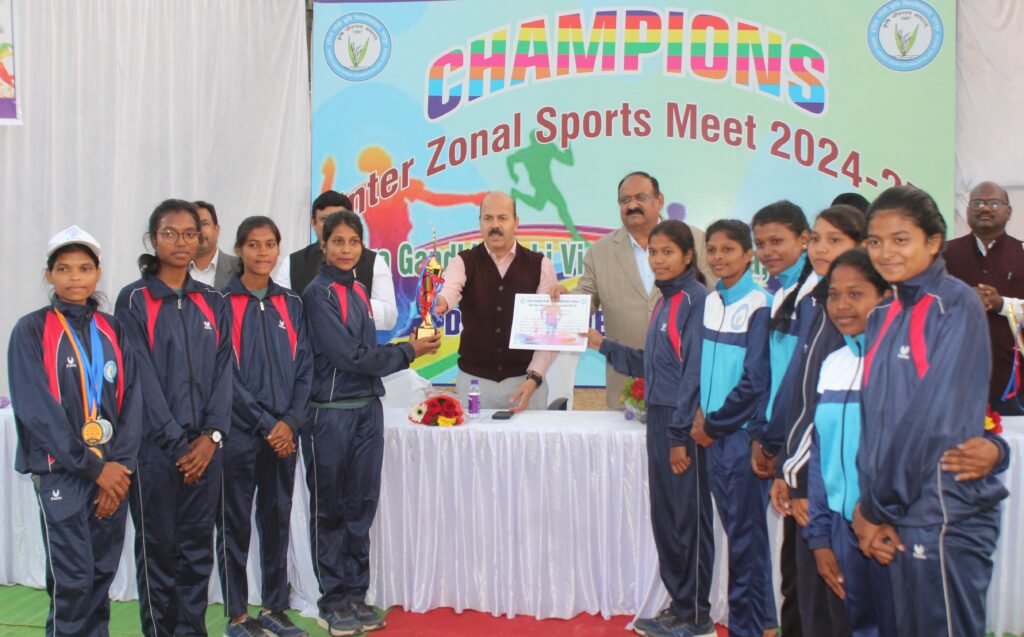 इंदिरा गांधी कृषि विश्वविद्यालय, रायपुर में 26 से 28 नवम्बर 2024 तक आयोजित विश्वविद्यालयीन तीन दिवसीय खेल कुम्भ का आज यहां समापन हुआ। कृषि महाविद्यालय, रायपुर के स्पार्ट्स कॉम्पलैक्स में तीन दिवसीय खेल कुम्भ के समापन समारोह के मुख्य अतिथि कुलपति डॉ. गिरीश चंदेल ने विभिन्न खेल स्पर्धाओं में विजेता प्रतिभागियों को पुरस्कार एवं प्रमाण पत्र देकर सम्मानित किया। कार्यक्रम की अध्यक्षता अधिष्ठाता छात्र कल्याण डॉ. संजय शर्मा ने की। इस विश्वविद्यालयीन खेल-कूद प्रतियोगिता में इंदिरा गांधी कृषि विश्वविद्यालय के पूर्व, पश्चिम, उत्तर एवं दक्षिण जोन के अंतर्गत आने वाले समस्त महाविद्यालयों के 160 प्रतिभागी शामिल हुए। विश्वविद्यालयीन खेल कुम्भ में ईस्ट जोन 165 अंक प्राप्त कर ओवर ऑल चैम्पियन रहा, वहीं 96 अंक के साथ नार्थ जोन ओवर ऑल द्वितीय स्थान पर रहा। सर्वश्रेष्ठ बालिका एथलीट का खिताब ईस्ट जोन की कुमारी संध्या नेताम तथा सर्वश्रेष्ठ बालक एथलीक का खिताब ईस्ट जोन के ही अक्षय ढोक को प्रदान किया गया।