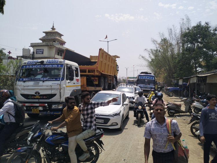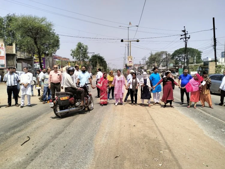 क्रेसर प्लांट में भारी वाहनों का प्रवेश रोकने कालोनीवासियों ने किया चक्काजाम