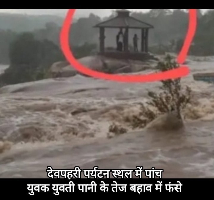 जानकारी के अनुसार, 2 लड़के और 3 लड़कियां देवपहरी नदी में अचानक बढ़े जलस्तर के कारण बीच धार में फंस गए हैं और बाहर नहीं निकल पा रहे हैं।