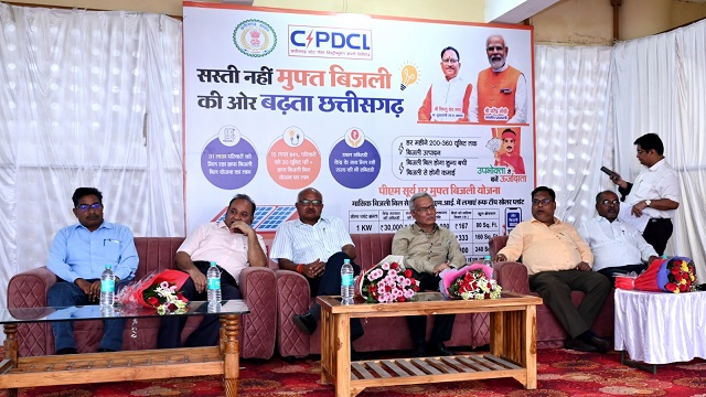 प्रधानमंत्री सूर्यघर मुफ्त बिजली योजना को घर-घर पहुंचाने के अभियान को गति देने और बिजलीकर्मियों को भागीदार बनाने के लिए आज पॉवर कंपनी मुख्यालय डंगनिया में जागरूकता शिविर का आयोजन किया गया। इसमें प्रबंध निदेशकों ने कहा कि घरों में रूफटॉफ सोलर पॉवर प्लांट लगाने से आपके घर का बिजली बिल जीरो हो जाता है। छत्तीसगढ़ अब सस्ती बिजली के बजाय मुफ्त बिजली को ओर बढ़ रहा है।छत्तीसगढ़ स्टेट पॉवर डिस्ट्रीब्यूशन कंपनी द्वारा प्रधानमंत्री सूर्य घर मुफ्त बिजली योजना को गति प्रदान करने के उद्देश्य से प्रदेशभर में जन-जागरूकता शिविर आयोजित किये जा रहे हैं। पॉवर कंपनी के डंगनिया मुख्यालय में आयोजित शिविर में उत्पादन कंपनी के प्रबंध निदेशक एसके कटियार, पारेषण कंपनी के प्रबंध निदेशक राजेश कुमार शुक्ला एवं वितरण कंपनी के प्रबंध निदेशक भीम सिंह कंवर सहित निदेशक (वाणिज्य) आरए पाठक विशेष रूप से उपस्थित थे। शिविर में रूफटॉफ सोलर पॉवर प्लांट लगाने वाले वेंडर स्टाल और त्वरित ऋण सुविधा देने के लिए बैंक के अधिकारी भी मौजूद रहे। स्पॉट पर ही सभी औपचारिकताएं पूरी करके आवेदन संबंधी प्रक्रिया पूरी की गई।
