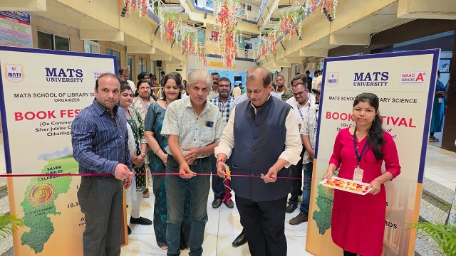मैट्स यूनिवर्सिटी के पुस्तकालय एवं सूचना विज्ञान विभाग द्वारा छत्तीसगढ़ राज्य के 25वें वर्ष के उपलक्ष्य में एक भव्य पुस्तक महोत्सव का आयोजन किया गया। यह कार्यक्रम मैट्स यूनिवर्सिटी परिसर पंडरी, रायपुर में हुआ।पुस्तक महोत्सव का शुभारंभ विश्वविद्यालय के कुलाधिपति श्री गजराज पगारिया जी के द्वारा किया गया। इस महोत्सव का मुख्य उद्देश्य राज्य की सांस्कृतिक और साहित्यिक विरासत का जश्न मनाना और छात्रों तथा पाठकों के बीच पढ़ने की आदत को बढ़ावा देना था। इस कार्यक्रम की अध्यक्षता पुस्तकालय एवं सूचना विज्ञान विभाग की विभागाध्यक्ष डॉ. कल्पना चंद्राकर ने की।पुस्तक महोत्सव में विभिन्न प्रकाशनकों और पुस्तक विक्रेताओं ने भाग लिया। इस दौरान, छत्तीसगढ़ के इतिहास, कला, संस्कृति और साहित्य से संबंधित कई पुस्तकों का प्रदर्शन किया गया। छात्रों और साहित्य प्रेमियों ने इस अवसर पर बडें उत्साहपूर्वक भाग लिया।डॉ. चंद्राकर ने अपने संबोधन में छत्तीसगढ़ के 25 साल के सफर और शिक्षा के क्षेत्र में हुई प्रगति पर प्रकाश डाला। उन्होंने कहा कि ‘पुस्तकें ज्ञान का भंडार होती हैं और इस तरह के महोत्सव हमें अपनी जड़ों से जुड़ने और भविष्य के लिए प्रेरित होने का अवसर देते हैं। यह पुस्तक महोत्सव न केवल ज्ञान का आदान-प्रदान करने का एक मंच था, बल्कि यह छत्तीसगढ़ राज्य की गौरवशाली रजत जयंती को मनाने का एक महत्वपूर्ण हिस्सा भी था। कार्यक्रम का समापन धन्यवाद ज्ञापन के साथ हुआ।संस्था के कुलाधिपति गजराज पगारिया, डाॅयरेक्टर जनरल प्रियेश पगारिया, कुलपति प्रो.डाॅ. के.पी.यादव, उपकुलपति डाॅ. दीपिका ढ़ांढ एवं कुलसचिव गोकुलानंद पंडा, ने कार्यक्रम की प्रशंसा की। समारोह में विभिन्न विभागों के विभागाध्यक्ष एवं शिक्षकगण उपस्थिति रहे। विभाग के शिक्षकगणों में सहायक प्राध्यापक संजय शाहजीत, लुकेश कुमार मिर्चे, ओमलता साहू एवं सहायक ग्रंथपाल शशिकांत कोसरे का कार्यक्रम को सफल बनाने में विशेष योगदान रहा।