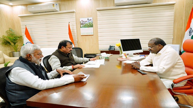 प्रेमप्रकाश पाण्डेय और विजय बघेल ने केंद्रीय इस्पात मंत्री एच.डी. कुमारस्वामी से की मुलाकात